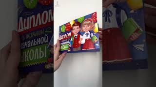 Диплом «Об окончании начальной школы» с яркими дизайном, изображением детей и воздушных шаров, напутственным стихотворением и пустыми строчками для заполнения информации о награждаемом. Подойдет для запечатывания на принтере.