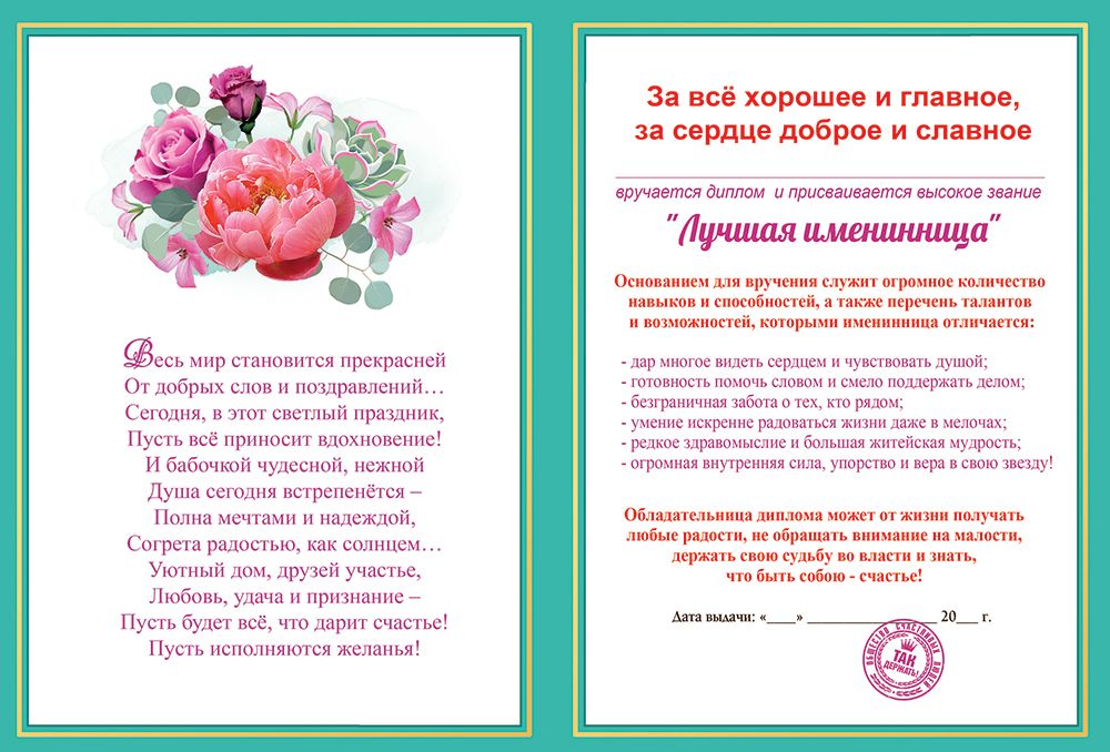 Диплом именинницы