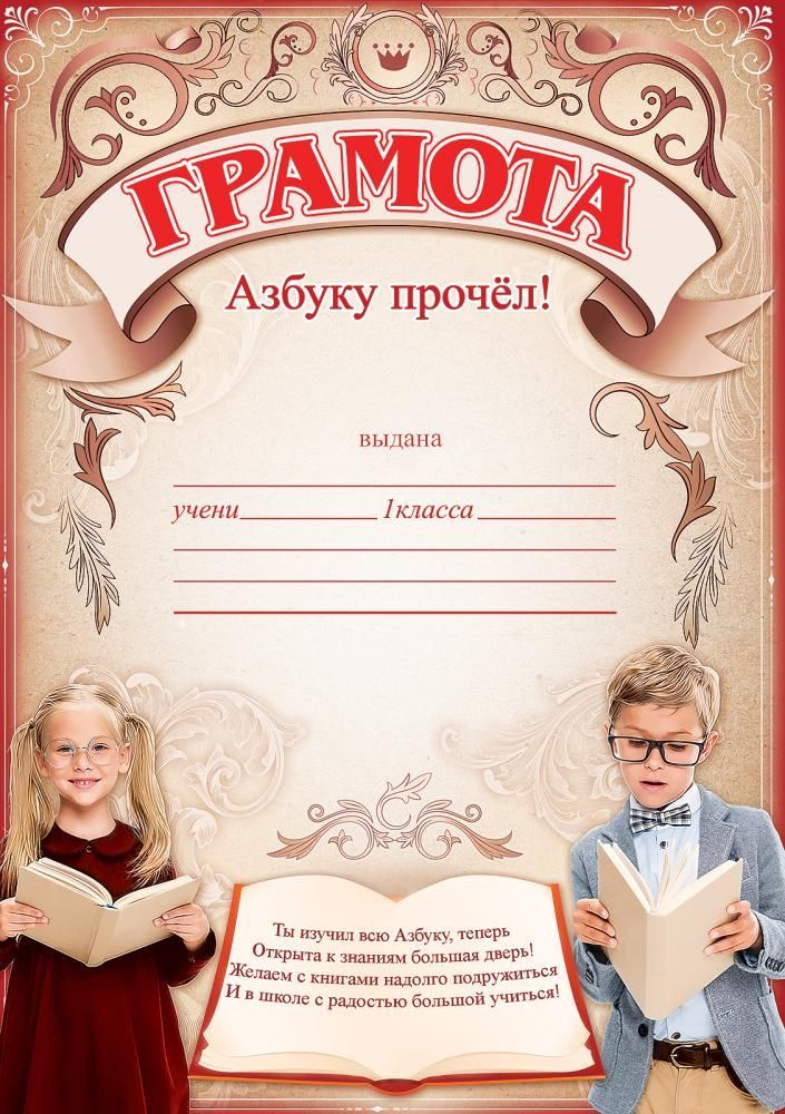 Грамота формата А5 «Азбуку прочёл!» предназначена для поощрения учащихся 1 класса по итогам освоения азбуки и первых навыков чтения. Изделие изготовлено из мелованной бумаги с плотной, гладкой поверхностью, что обеспечивает четкую передачу печати, устойчивость к истиранию и аккуратный внешний вид при частом использовании в школьной практике. Лицевая сторона оформлена в классическом торжественном стиле с декоративной рамкой, крупным заголовком «Грамота» и подзаголовком «Азбуку прочёл!», в нижней части размещен иллюстративный блок с изображением школьников и открытой книги с поздравительным стихотворным текстом. В центральной зоне предусмотрены строки для вписывания данных вручную: фамилии и имени ученика, класса, а также даты или повода награждения; разметка выполнена тонкими линиями, удобными для письма шариковой или гелевой ручкой. Габаритные размеры готового изделия: длина 210 мм, ширина 148 мм, что обеспечивает совместимость с распространенными файлами, папками, рамками и позволяет хранить грамоты в стандартных школьных папках без дополнительной подрезки. Плотная мелованная бумага хорошо держит форму, не деформируется при кратковременном изгибе и подходит для краткосрочного размещения на стендах, в классных уголках и на выставках достижений. Печатные краски устойчивы к выцветанию при обычных условиях эксплуатации в помещении, что важно при длительном хранении архивов наград у образовательных учреждений и родителей. В одной упаковке — 20 грамот, что удобно для комплексного обеспечения класса, параллели или учебной группы и позволяет планировать закупку с учетом количества учащихся и повторных награждений в течение года. Изделие ориентировано на использование в начальной школе, подготовительных группах и развивающих центрах, подходит для вручения на итоговых уроках по чтению, школьных праздниках и тематических мероприятиях, формируя единый визуальный стандарт поощрительной документации в учреждении. Текст и подсказ внутри помогают педагогу быстро заполнить бланк без дополнительной верстки или разработки собственного шаблона, что снижает временные затраты при массовой выдаче грамот.