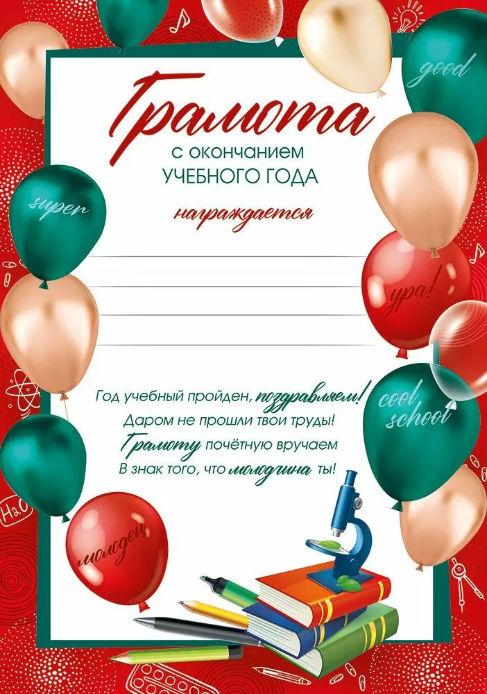 Грамота с окончанием учебного года