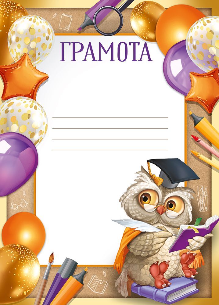 Грамота формата А4 предназначена для оформления поощрений и наград в образовательных учреждениях, детских центрах, кружках и на массовых мероприятиях. Изделие изготовлено из мелованной бумаги с плотной гладкой поверхностью, обеспечивающей чёткую передачу яркого полноцветного рисунка по краю и стабильное качество печати при дополнительном нанесении текста. Размер готового изделия 295×210 мм соответствует стандарту офисной полиграфии, что упрощает хранение в папках, файлах и стандартных архивных коробах, а также позволяет использовать большинство распространённых рамок и планшетов для последующей презентации. Лицевая сторона оформлена тематической детской иллюстрацией с воздушными шарами и персонажем совы в академической мантии, что делает бланк уместным для поощрения учебных успехов, участия в олимпиадах, конкурсах, творческих и спортивных достижений детей младшего и среднего школьного возраста. Внутри предусмотрено свободное поле без текста с разметкой в виде строк, что позволяет самостоятельно вносить сведения о награждаемом, поводе и дате вручения вручную или с использованием печатающих устройств, совместимых с мелованной бумагой. Отсутствие отделки упрощает последующую персонализацию: поверхность хорошо подходит для надписей шариковыми и гелевыми ручками, маркерами, возможна аккуратная штемпельная печать. Плотность и структура материала обеспечивают достаточную жёсткость, грамота не деформируется при кратковременной транспортировке и демонстрации без подложки, что важно при массовом вручении на сцене или в классе. Упаковка содержит 20 однотипных бланков, что удобно для оптовых закупок школами, развивающими центрами, организаторами конкурсов и сетевыми магазинами канцелярии: комплект позволяет формировать серию наград в едином стиле, оптимизировать складской остаток и планировать расход в течение учебного года. Для розничного покупателя такой набор обеспечивает запас грамот для семейных праздников, домашних мини-конкурсов и поощрения ребёнка за достижения, при этом стандартный формат и нейтральная учебная тематика делают изделие универсальным в использовании.