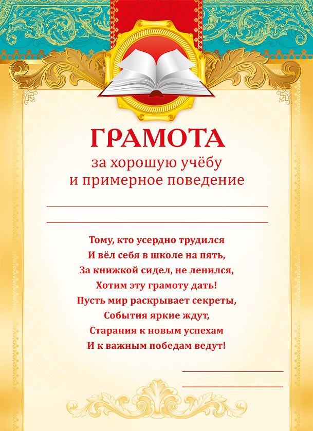 Грамота за хорошую учебу и примерное поведение