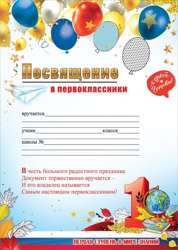 Посвящение «Посвящение в первоклассники» формата А4 представляет собой готовый печатный бланк на бумажной основе для проведения школьных и дошкольных мероприятий. Изделие изготовлено из плотной офсетной бумаги, обеспечивающей достаточную жесткость при вручении без дополнительной подложки и устойчивость к многократному перелистыванию и хранению в папках или личных архивах. Габаритные размеры готового изделия составляют 295×210 мм, что позволяет размещать его в стандартных файловых вкладышах, папках и портфолио ученика. На лицевой стороне предусмотрено цветное оформление с воздушными шарами, тематическими школьными элементами и крупным заголовком «Посвящение в первоклассники», а также структурированный блок для вписывания данных: Ф.И.О. ученика, номер и буква класса, номер школы и дополнительные сведения. Текстовое поле дополнено ритмическим поздравительным текстом и подсказками по заполнению, что упрощает массовую подготовку документов в образовательных организациях. Отделка без ламинации и тиснения облегчает нанесение рукописных записей любыми распространёнными пишущими средствами, включая гелевые и шариковые ручки, без размазывания и задержки высыхания. Плотность и качество печати подобраны таким образом, чтобы изображение не просвечивало при размещении бланка в прозрачных файловых конвертах и при экспонировании на стендах. Изделие рассчитано на использование в школах, гимназиях, лицеях, центрах дополнительного образования и подготовительных группах для оформления торжественной части праздника «Посвящение в первоклассники». Для оптового покупателя важна стабильность параметров партии: единый дизайн, точное совпадение цветовой гаммы и размеров, что упрощает планирование и проведение массовых мероприятий, а также позволяет формировать однородный ассортимент в розничной выкладке. Упаковка содержит 20 бланков, что удобно для закупки на класс или небольшую группу, оптимизирует складское хранение и транспортировку, а также даёт возможность оперативно пополнять расходуемый фонд наградных документов в течение учебного года.