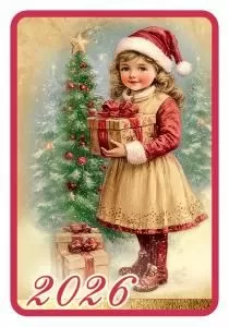 Календарь карманный на 2026 год (девочка в шапке с подарками)
