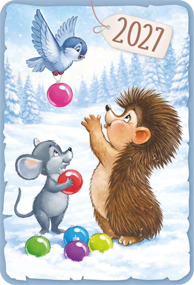 Календарь карманный 2027 «Ретро_2» (звери с елочными шарами)