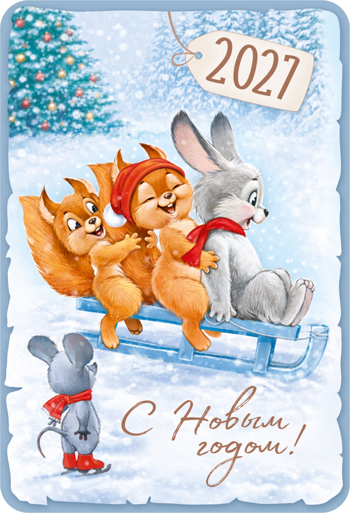 Календарь карманный 2027 «Ретро_2» (звери на санках)