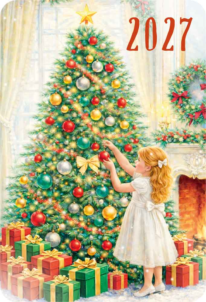 Календарь карманный 2027 «Ретро сюжетные» (девочка наряжает елку)