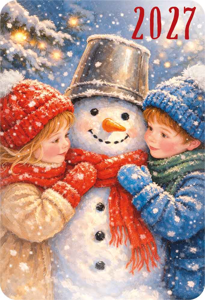 Календарь карманный 2027 «Ретро сюжетные» (дети обнимают снеговика)