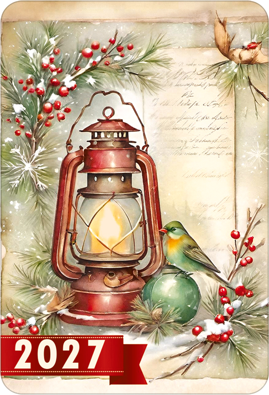 Календарь карманный на 2027 год (новогодний фонарь и птичка)