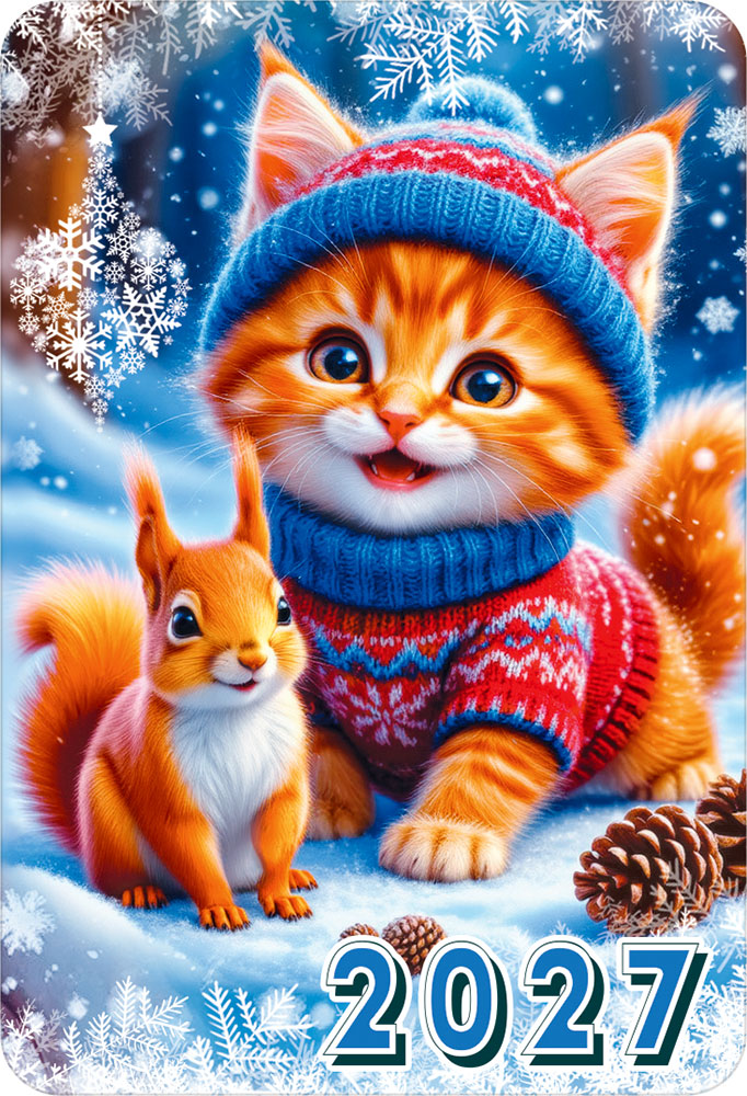 2027 Календарь карманный (Рыжий котик в шапке с белочкой).