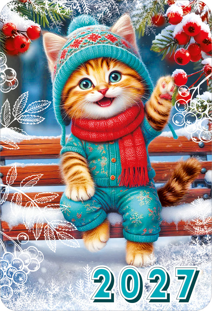2027 Календарь карманный (Котик в шапке на скамейке).