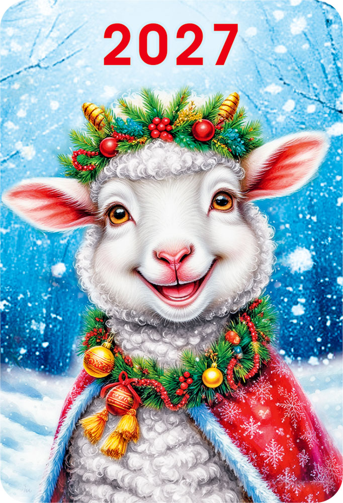 2027 Календарь карманный Символ года (Портрет овечки в новогоднем венке).
