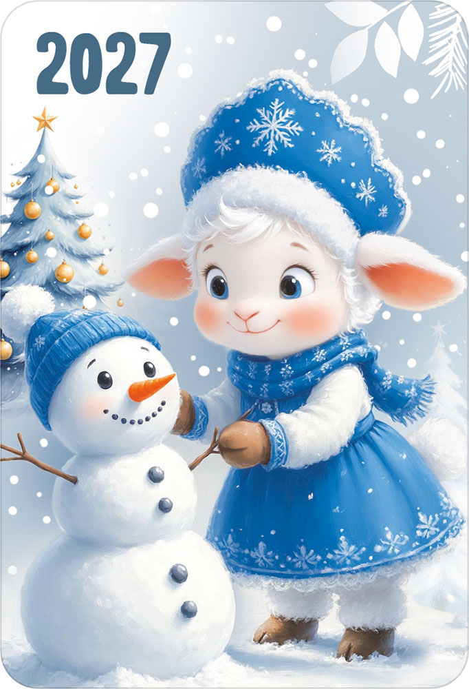 Календарь карманный 2027 "Новогодние овечки в кокошниках" (овечка и снеговик)