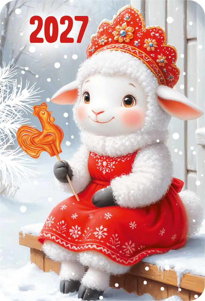 Календарь карманный 2027 "Новогодние овечки в кокошниках" (овечка с петушком)