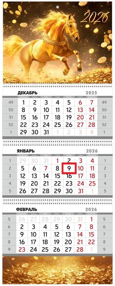Календарь квартальный трехблочный «Символ года - Золотая лошадь» 2026