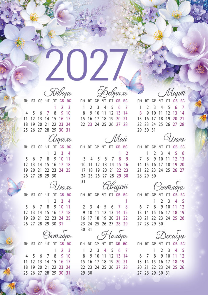 Календарь листовой 2027 (цветы)