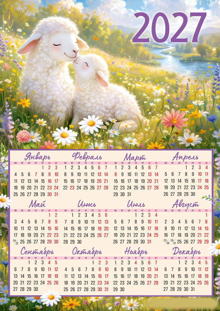 Календарь листовой 2027 (овечки на лугу)
