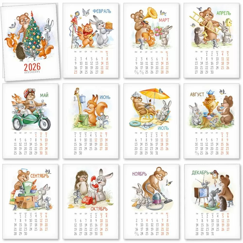 Настольный календарь «Ретро 2026» – это стильный аксессуар для любого рабочего стола. В комплект набора входит 13 карточек из дизайнерского картона (123х90 мм): 12 для каждого месяца в году и обложка. Чудесные авторские иллюстрации в стиле ретро придутся по душе и взрослым, и детям! На каждой карточке изображен сказочный сюжет с участием лесных зверушек, что делает изделие не просто удобным органайзером для планирования времени, но и источником хорошего настроения. Календарь можно установить на любой плоской поверхности с помощью специальной подставки (не входит в набор, но можно использовать подставку из прошлогоднего набора).