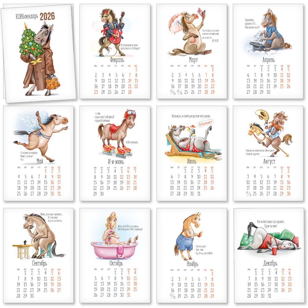 Календарь настольный «КОНЬлендарь 2026» (набор карточек)