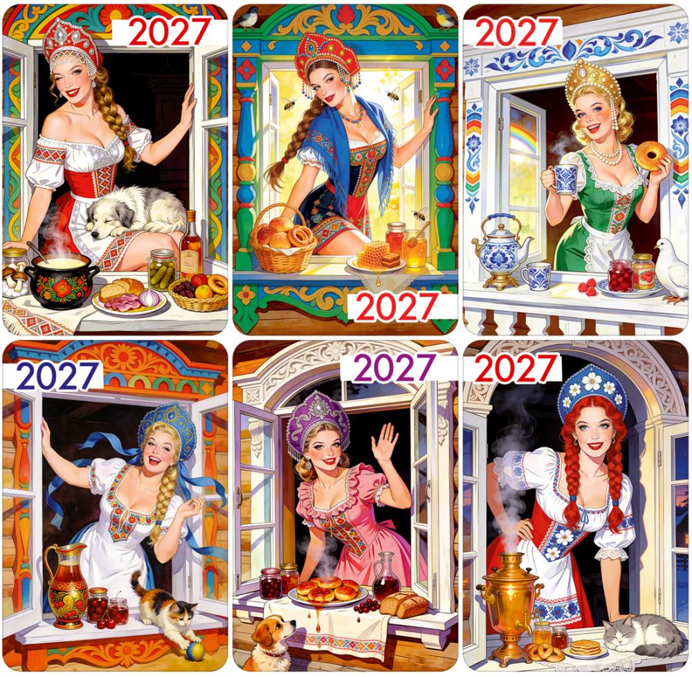Микс календарей карманных на 2027 год "Русский стиль"