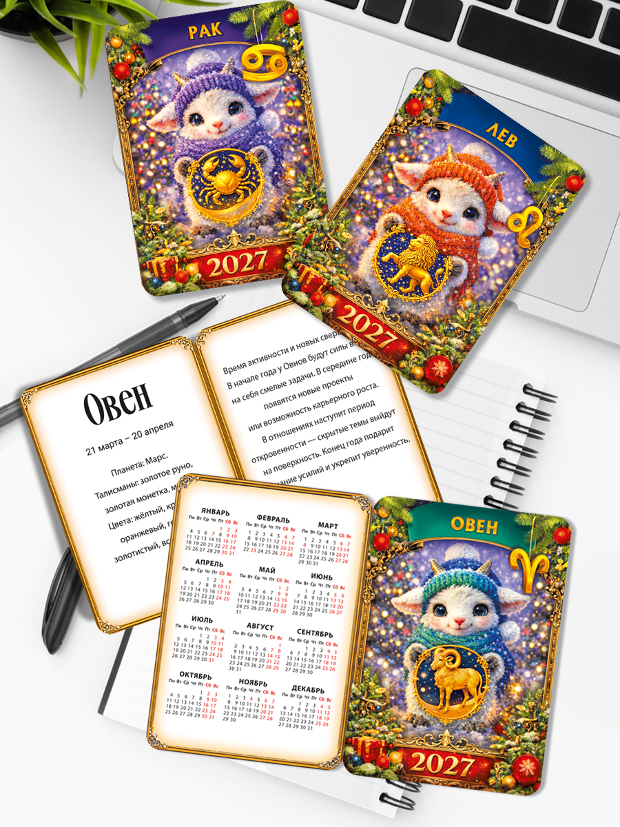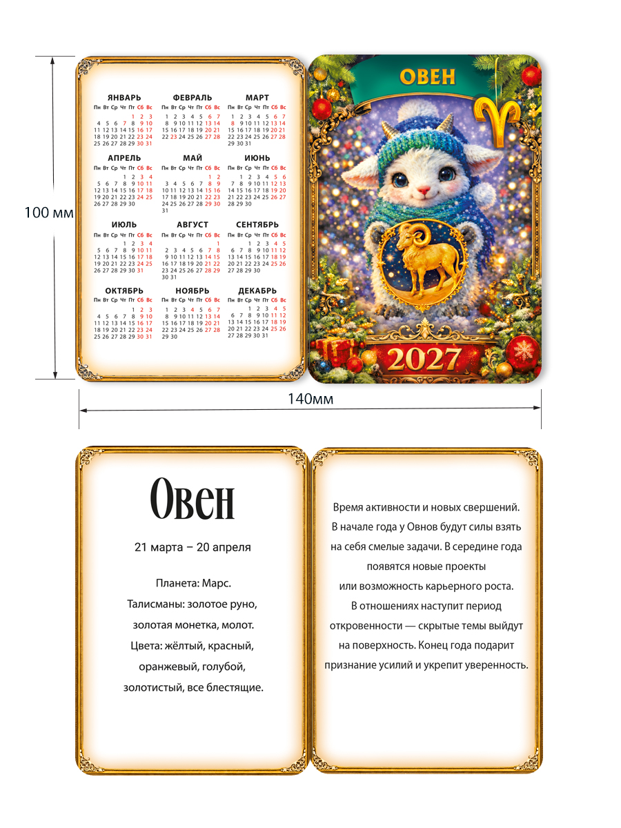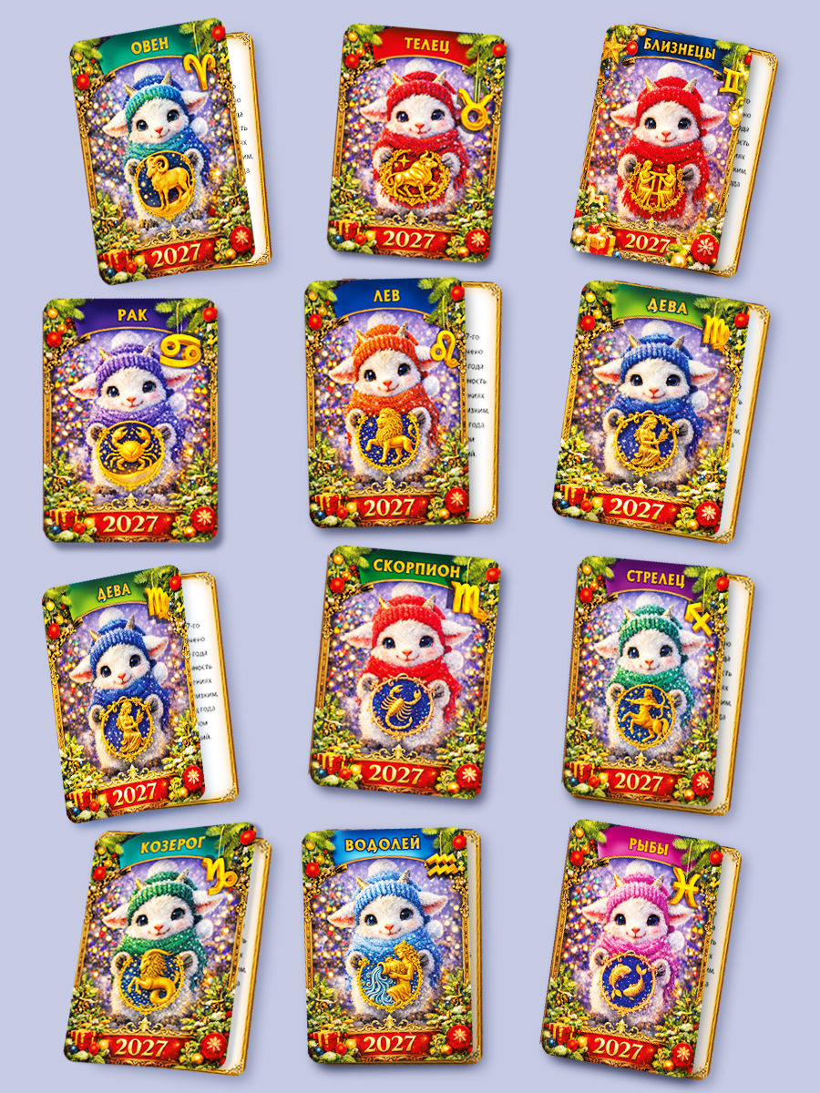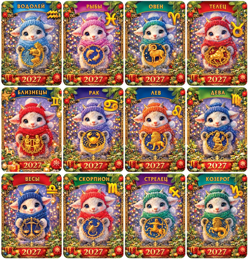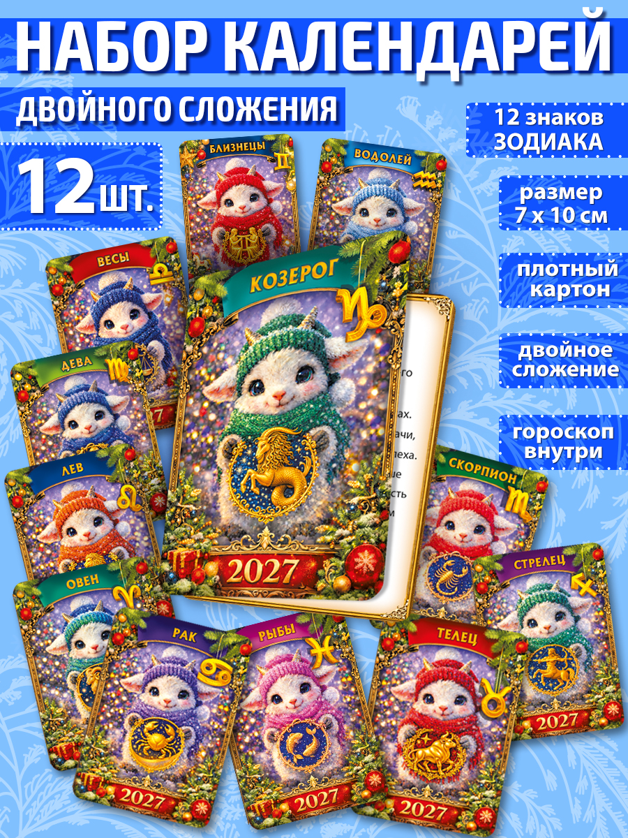 Комплект двойных календарей "Гороскоп 2027" (Знаки Зодиака в стиле Фэнтези) - 12 шт.