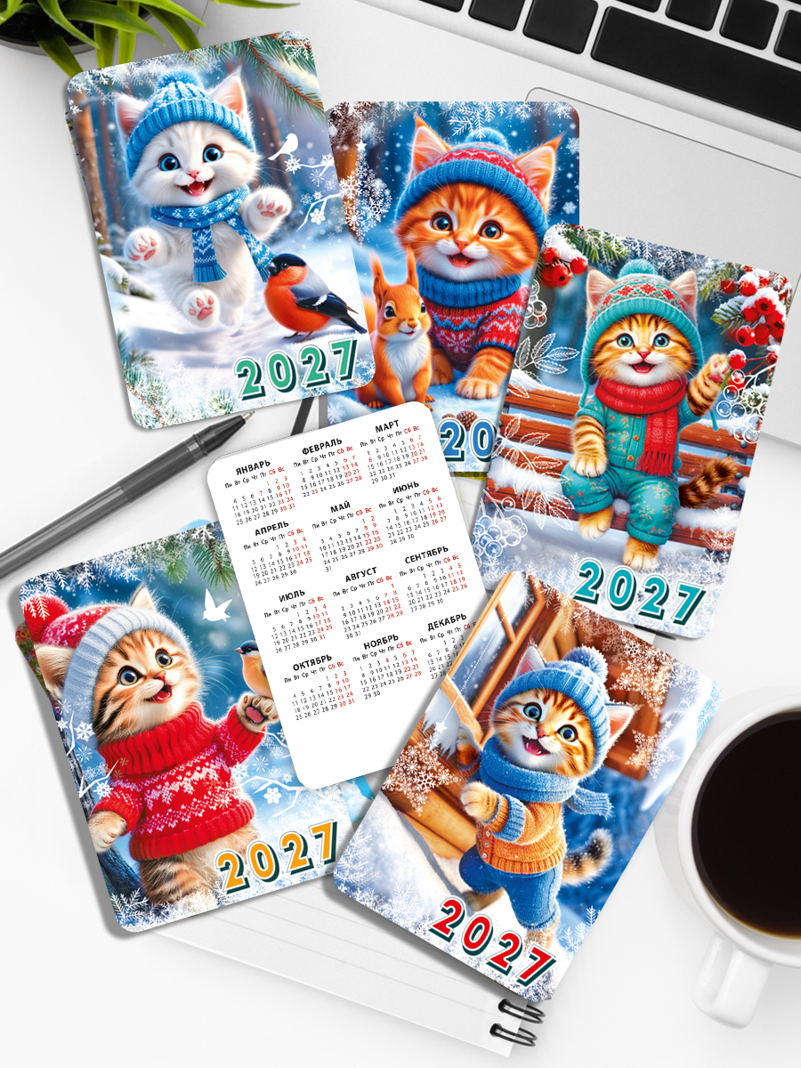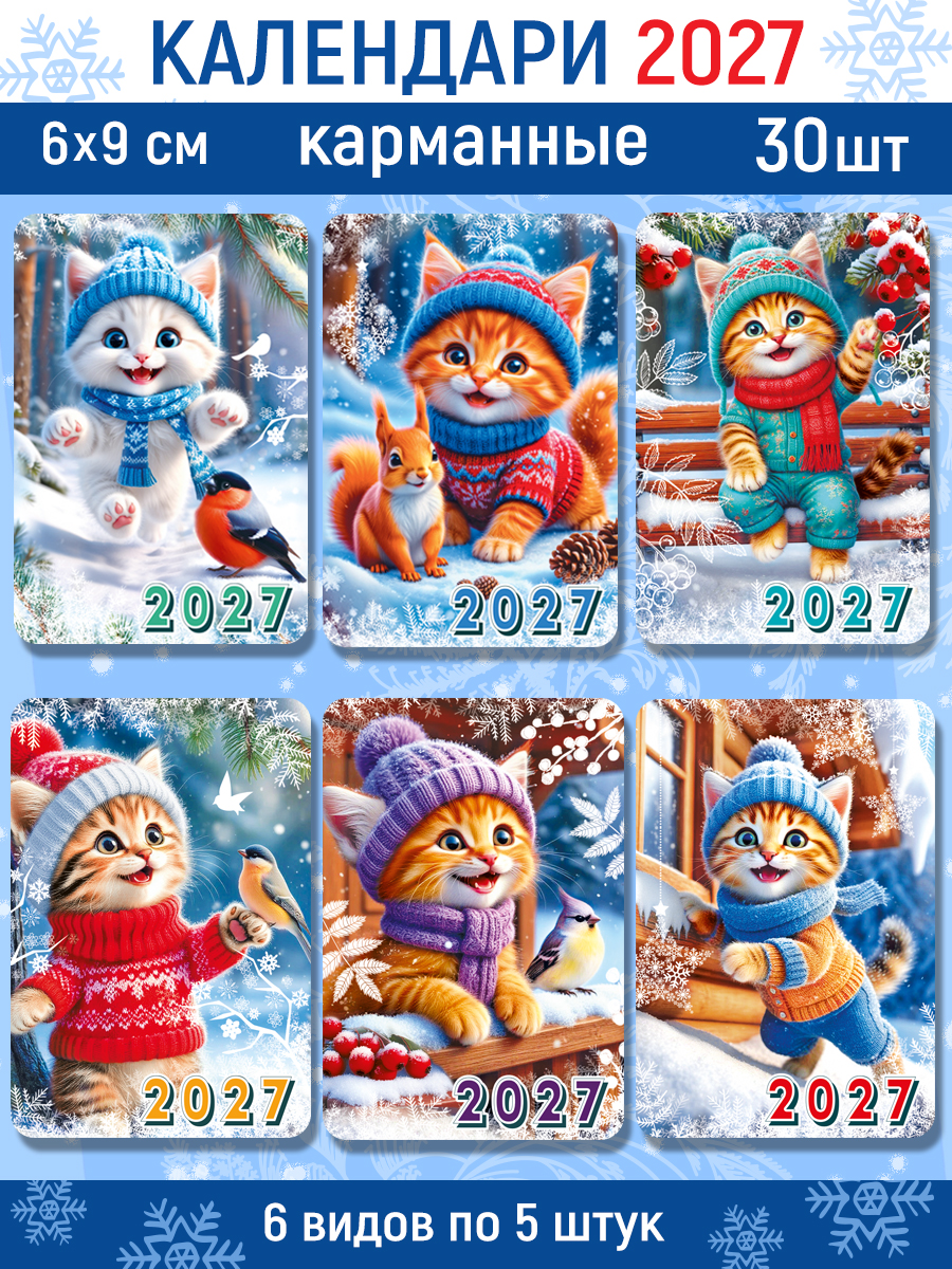 Набор календарей карманных "Котята зимой" 2027 - 30 шт