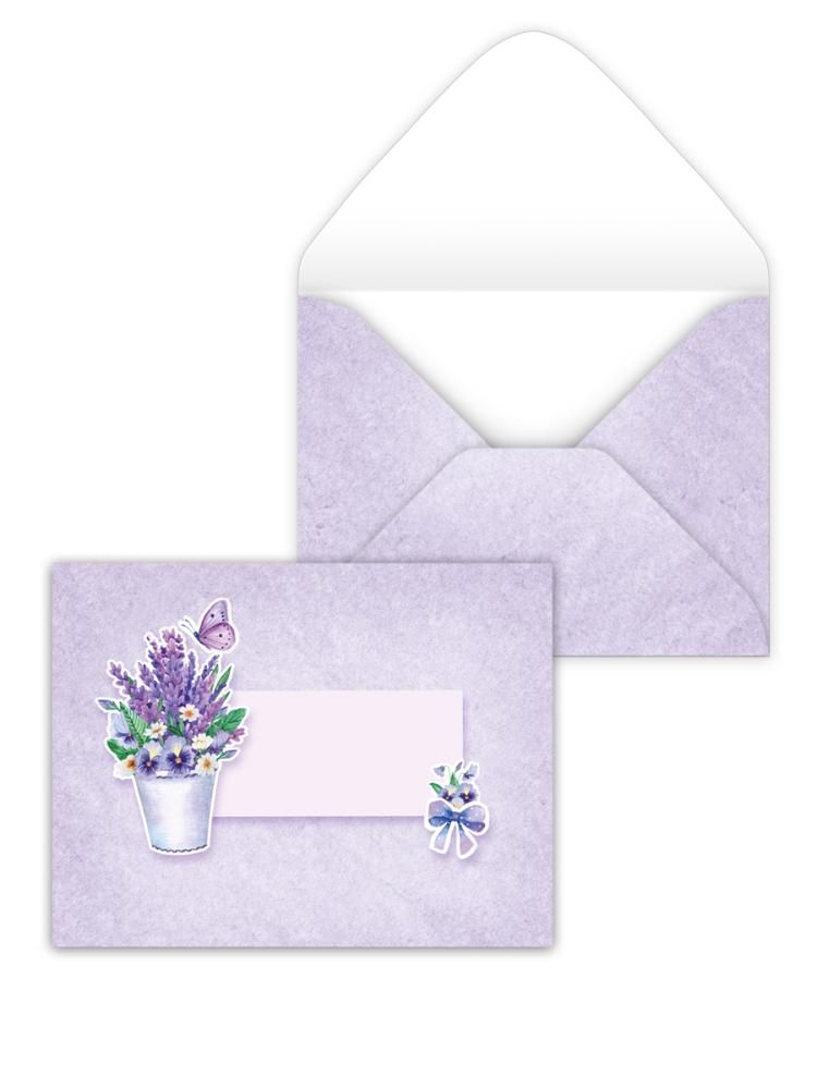 Конверт художественный формата А6 изготовлен из плотной бумажной основы, обеспечивающей стабильную геометрию изделия и аккуратный внешний вид при хранении и пересылке. Готовый размер 115 × 90 мм позволяет использовать конверт с большинством стандартных открыток, вкладышей и небольших полиграфических материалов, что удобно при формировании ассортимента для розничных точек и интернет‑магазинов. Лицевая сторона оформлена цветной художественной композицией в лавандово‑фиолетовой гамме: букет цветов в металлическом ведёрке, бабочка и небольшой декоративный букет с бантом на однотонном фоне. Дизайн универсален по тематике и может применяться для поздравлений с днём рождения, семейными праздниками, сезонными событиями, а также как упаковка для подарочных сертификатов, денежных вложений или небольших плоских сувениров. Внутренняя часть без текста и готовых надписей, что даёт возможность адаптировать изделие под любые задачи, в том числе корпоративные: вложение брендированных открыток, индивидуальных посланий, дисконтных карт, приглашений. Отделка без дополнительных декоративных эффектов облегчает хранение и транспортировку больших партий, снижает риск повреждения поверхности при штабелировании и упаковке. Бумажный материал совместим с ручной подписью шариковыми, гелевыми и капиллярными ручками, допускает аккуратное нанесение печатных штампов и наклеивание этикеток с данными получателя. В одной упаковке поставляется 20 конвертов, что удобно для планирования оптовых закупок, формирования серийных наборов и равномерного распределения по торговым точкам.