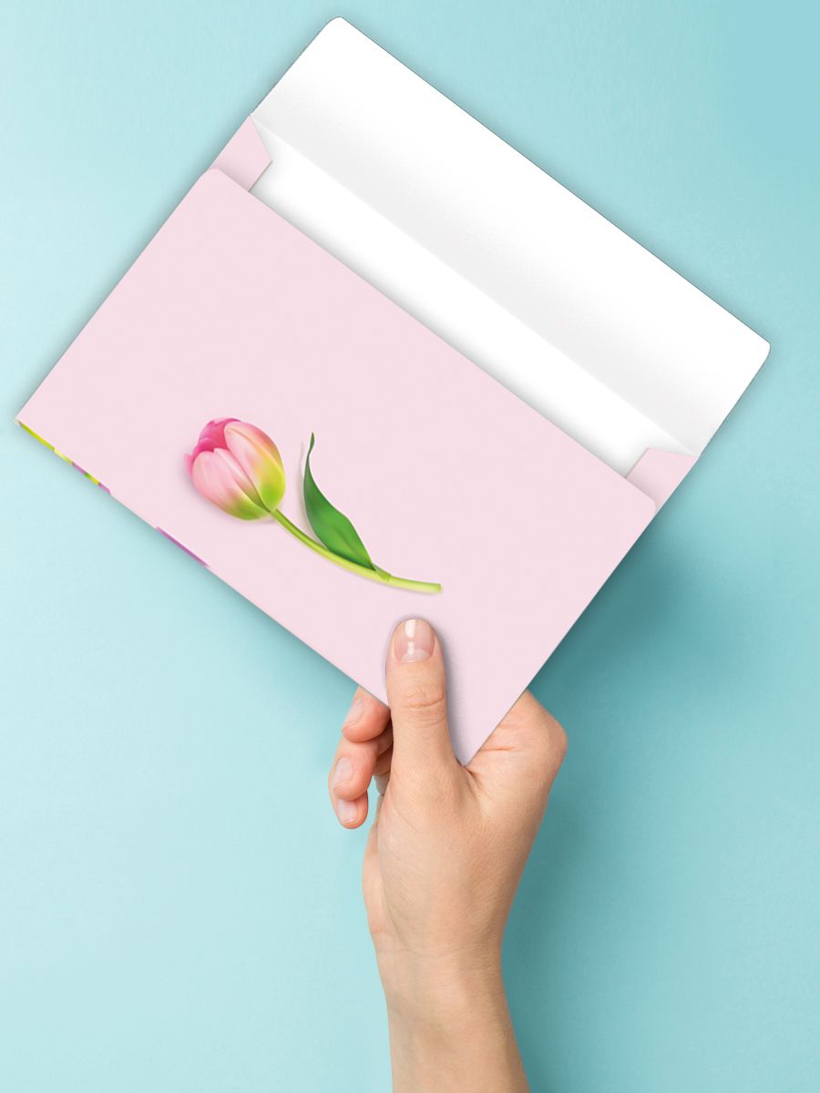Конверт художественный формата А5 предназначен для упаковки подарочных сертификатов, поздравительных открыток, вложений к букетам и сувенирной продукции. Изделие изготовлено из плотной бумаги, обеспечивающей стабильную геометрию и сохранность вложений при транспортировке и хранении. Готовый конверт имеет размеры 190 × 132 мм, что позволяет использовать его с большинством стандартных вкладышей и полиграфической продукции аналогичного формата. На внешней стороне размещено полноцветное изображение розово-зелёной гаммы с тюльпанами и декоративной лентой, внутреннее пространство без текста, что даёт возможность применять конверт в различных тематических коллекциях и под любые поводы. Бумага имеет ровную поверхность, пригодную для нанесения надписей шариковыми и гелевыми ручками, маркерами и штампами, что важно при персонализации в розничной продаже и при доработке в корпоративных заказах. Конверт поставляется с фигурной вырубкой клапана, что облегчает вскрытие и придаёт изделию завершённый вид в витринной выкладке. Отделка без дополнительных спецэффектов снижает риск повреждений при массовой пересылке, упрощает штабелирование и упаковку в короба, а также облегчает учёт на складе и в торговом зале. Нейтральный цветовой фон и флористический мотив делают конверт универсальным решением для цветочных салонов, сувенирных магазинов, книжных и канцелярских отделов, а также для компаний, оформляющих подарочные сертификаты и поздравительные вложения для клиентов и сотрудников. В упаковке 20 штук, что удобно для планирования оптовых закупок, формирования однородных партий и поддержания стабильного ассортимента в сезонных и постоянных коллекциях.