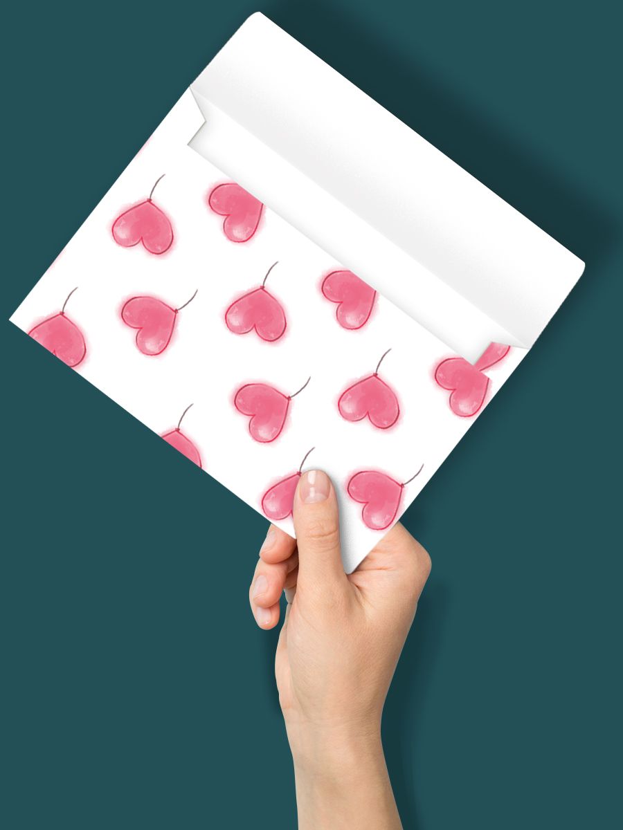 Конверт художественный формата А5 предназначен для оформления поздравительных открыток, вложения небольших полиграфических материалов и подарочных сертификатов в розничном и корпоративном сегменте. Изделие выполнено из плотной бумаги, устойчивой к деформации при стандартной почтовой и курьерской пересылке, что важно для оптовых закупок в сетевые магазины, службы доставки подарков и ивент-агентства. Готовый размер конверта составляет 190 × 132 мм, что обеспечивает совместимость с большинством стандартных открыток и вкладышей А5, сложенных пополам, а также с вложениями близкого формата без дополнительной подрезки. Поверхность имеет художественную отделку: снаружи конверт полностью запечатан рисунком воздушных шаров в форме розовых сердец на белом фоне, внутренняя сторона остаётся белой, что облегчает маркировку, проставление штампов и наклеек с адресной информацией. Отсутствие текста внутри делает изделие универсальным для любых тематик — от свадебных приглашений и поздравлений ко дню свадьбы или годовщины до романтических писем, подарочных сертификатов и промо-вложений. Фигурная вырубка клапана придаёт конверту аккуратный, завершённый вид и обеспечивает точное совмещение линий сгиба, что удобно при массовой упаковке и автоматизированной или полуавтоматической закладке вложений. Плотная бумага хорошо держит форму, не просвечивает вложение и подходит для хранения в коробах и лотках без потери геометрии. Конверты поставляются по 20 штук, что позволяет формировать оптимальный запас на складе и удобно планировать закупки под сезонные распродажи, праздничные коллекции и разовые мероприятия. Отсутствие внутреннего печатного слоя и нейтральный, но легко считываемый романтический дизайн упрощают включение данной позиции в ассортиментную матрицу как универсального конверта для подарочной и сувенирной продукции.