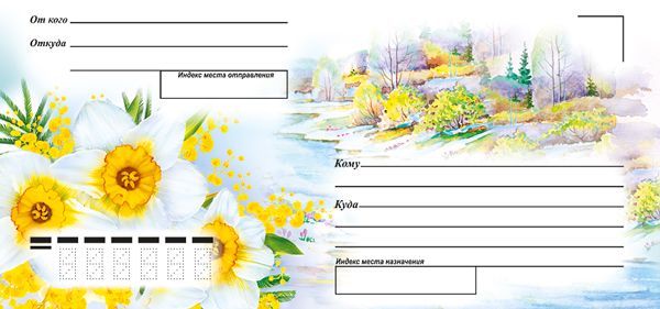 Конверт художественный формата А4 изготовлен из плотной белой бумаги, обеспечивающей стабильную геометрию и сохранность вложений при почтовой пересылке и хранении в архиве. Готовое изделие имеет размеры 220×110 мм, что соответствует распространённому почтовому формату и упрощает интеграцию в существующие процессы документооборота, сортировки и упаковки. Лицевая сторона оформлена художественной композицией: акварельный пейзаж в пастельных тонах дополнен крупным изображением цветов, что делает конверт уместным для отправки как деловой, так и поздравительной корреспонденции, вложения открыток, сертификатов, фотографий, приглашений и других плоских печатных материалов. Печать выполнена по всей внешней поверхности с сохранением свободных зон под стандартные поля адресации, включая строки «От кого», «Откуда», «Кому», «Куда», а также отдельные области под индекс места отправления и индекс места назначения, что облегчает машинную и визуальную сортировку почты. Внутренняя сторона без текста и без дополнительной отделки, что позволяет использовать конверт в универсальных сценариях, в том числе для корпоративной рассылки, где важно нейтральное внутреннее оформление и возможность вложения брендированных материалов без конфликта дизайнов. Бумага оптимальной толщины обеспечивает достаточную непрозрачность для сокрытия содержимого и устойчивость к сгибам, при этом конверты удобно укладываются в стопы, не деформируются при длительном хранении на складе и в процессе транспортировки. Партия упакована по 100 штук, что удобно для планирования оптовых закупок, формирования складских остатков и равномерной выдачи в отделы продаж, канцелярии или розничные точки. Конверт ориентирован на использование в почтовых отправлениях, офисной и домашней переписке, при оформлении поздравительных писем и сезонных рассылок, обеспечивая единый визуальный стиль при большом объёме отправок.
