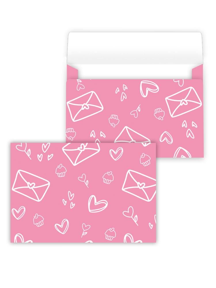 Конверт художественный формата А5 изготовлен из плотной бумаги с декоративной отделкой, рассчитанной на регулярное использование в условиях розничных точек и массовых рассылок. Готовое изделие имеет размеры 190 × 132 мм, что обеспечивает совместимость с большинством стандартных открыток, вложений и полиграфической продукции аналогичного формата. Фигурная вырубка формирует аккуратный контур клапана и ровные края, что облегчает закладку вложений и придаёт изделию законченный внешний вид при выкладке на витрине. Внешняя сторона конверта полностью запечатана розовым фоном с графическим рисунком в виде конвертов, сердечек и небольших декоративных элементов, что позволяет использовать его как самостоятельный подарочный носитель без дополнительной упаковки. Внутренняя поверхность остаётся белой и без текста, поэтому конверт универсален по тематике и может применяться для поздравительных открыток, личных посланий, вложений к подаркам, а также для оформления сертификатов и пригласительных на частные и корпоративные мероприятия. Бумажная основа оптимальной толщины поддерживает форму, не деформируется при аккуратном сгибе и транспортировке, удобно укладывается в коробки и почтовые отправления. Конструкция конверта адаптирована к машинной и ручной сортировке, не содержит выступающих элементов и подходит для хранения в стандартных офисных лотках и стеллажах. В одной упаковке поставляется 20 конвертов, что удобно для оптовых закупок, формирования ассортиментных матриц, комплектов для праздничных коллекций и планирования тиражей в сегменте подарочной и канцелярской продукции.