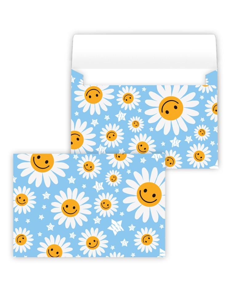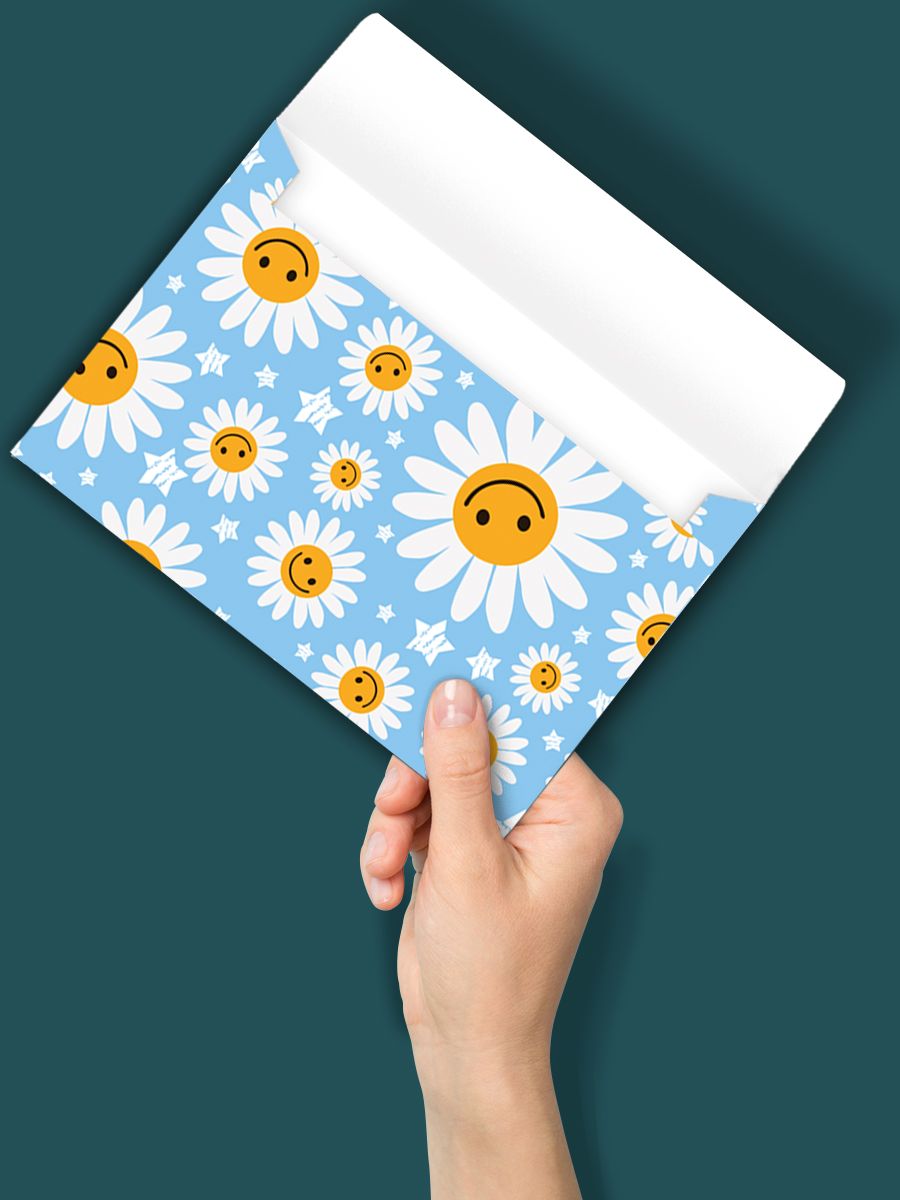 Конверт художественный формата А5 изготовлен из плотной бумажной основы, обеспечивающей стабильную геометрию изделия и аккуратный внешний вид при хранении и транспортировке. Готовый размер конверта 190 × 132 мм позволяет использовать его с большинством стандартных открыток, вложений и полиграфической продукции соответствующего формата, что удобно при формировании ассортимента для розничных точек и при оптовых поставках под серии открыток или сертификатов. Внешняя сторона оформлена полноцветным рисунком: на голубом фоне размещены стилизованные ромашки с контрастными жёлтыми центрами и графичными «улыбками», дополненные небольшими белыми звёздами, за счёт чего конверт подходит для широкого спектра неформальных и праздничных сценариев — от детских мероприятий и дней рождения до вложения небольших писем, приглашений и поздравительных карт. Внутренняя поверхность белая, без текста, что облегчает унификацию товара в смешанных партиях и не ограничивает тематику использования. Конверт не имеет дополнительной отделки, что снижает риск повреждений при массовой пересылке и упрощает хранение в коробах и стеллажных системах; поверхность устойчива к стандартным нагрузкам при сортировке, укладке в пачки и фасовке по наборам. Бумажный материал совместим с большинством распространённых пишущих средств, что позволяет наносить адресацию, пометки или индивидуальные подписи непосредственно на конверт. Нейтральная конструкция клапана обеспечивает надёжное закрытие при использовании стандартных клеевых или клейких лент, а также позволяет применять конверт как упаковку-вкладыш внутри подарочных наборов. В упаковке 20 конвертов, что удобно для оптовых закупок, планирования остатков и равномерного распределения по торговым точкам или рабочим подразделениям.