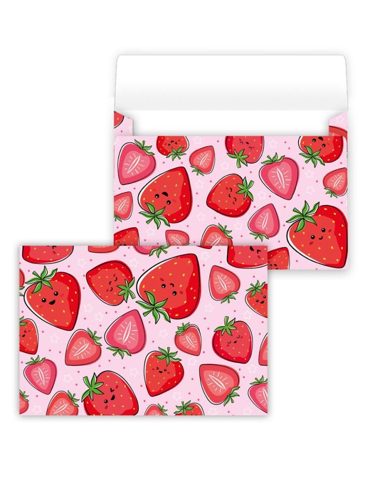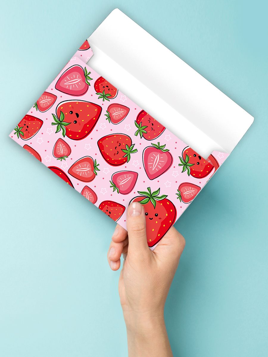 Конверт художественный формата А5 изготовлен из плотной бумажной основы, обеспечивающей устойчивость к деформации при хранении и пересылке вложений. Готовое изделие имеет размеры 190 × 132 мм, что позволяет размещать внутри стандартные открытки, пригласительные, вложения на листах формата А5, сложенных пополам, а также небольшие полиграфические материалы. Внешняя сторона конверта полностью запечатана рисунком с клубничным орнаментом на розовом фоне; изображение выполнено в яркой, но ровной цветопередаче, пригодной для выкладки в розничной витрине и формирования тематических подборок. Внутренняя поверхность без текста и без дополнительной отделки, что упрощает использование конверта в разных сценариях: для поздравительных открыток, детских мероприятий, упаковки подарочных сертификатов, фирменных вложений и сувенирной продукции. Бумага подобрана таким образом, чтобы клапан сохранял форму при многократном открывании и закрывании, не расслаивался по линии сгиба и не просвечивал вложение при стандартной толщине бумаги письма или открытки. Конверт поставляется в упаковке по 20 штук, что удобно для оптовых закупок для магазинов канцелярии, сувенирной продукции, детских центров и студий творчества, а также для организаций, оформляющих рассылки в едином стиле. Ровные края и точная геометрия способствуют аккуратной укладке стопками, экономии места на складе и в транспортной таре, а также совместимости с большинством стандартных почтовых и подарочных коробок. Универсальный художественный дизайн ориентирован на широкую аудиторию и подходит для сезонных и круглогодичных предложений, что облегчает планирование ассортимента и снижает риск залеживания товара.