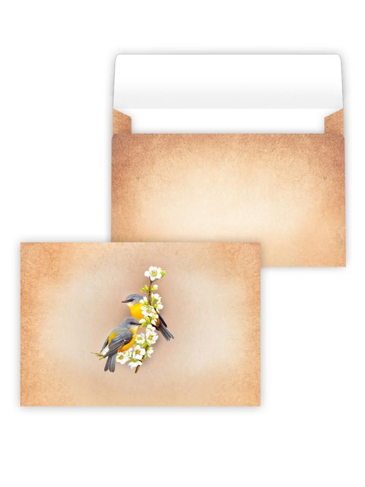 Конверт художественный формата А5 изготовлен из плотной бумажной основы, обеспечивающей стабильную геометрию изделия и аккуратный внешний вид при хранении и пересылке. Габаритные размеры готового конверта составляют 190 × 132 мм, что позволяет размещать внутри стандартные открытки, вкладыши и документы, сложенные пополам, без деформации краев. Лицевая сторона оформлена художественной композицией с изображением двух птиц на ветке с цветами на мягком бежево‑коричневом фоне; внутренняя часть без текста и рисунков, что удобно для универсального использования в ассортименте и не ограничивает тематику вложений. Печать выполнена по всей внешней поверхности с сохранением ровных полей, что важно при выкладке товара на витрине и формировании однородных партий для оптовых поставок. Бумага обладает достаточной плотностью для сохранения формы клапана и надежного удержания клеевого слоя или наклейки при запечатывании, при этом конверты не создают излишнего объема при транспортировке и складском хранении. Нейтральная цветовая гамма и ненагруженный фон позволяют сочетать изделие с различными видами поздравительных и деловых вложений, использовать в розничной продаже как самостоятельный конверт для подарочного сертификата, денежного подарка, приглашения или письма. В упаковке 20 конвертов, что удобно для формирования серийных отправлений, подготовки мероприятий, корпоративных рассылок и пополнения полочного запаса без частых дозакупок. Конверты поставляются единым типоразмером, хорошо укладываются в стандартные коробки и не требуют специальных условий хранения, что снижает логистические издержки и упрощает планирование закупок для оптовых клиентов.