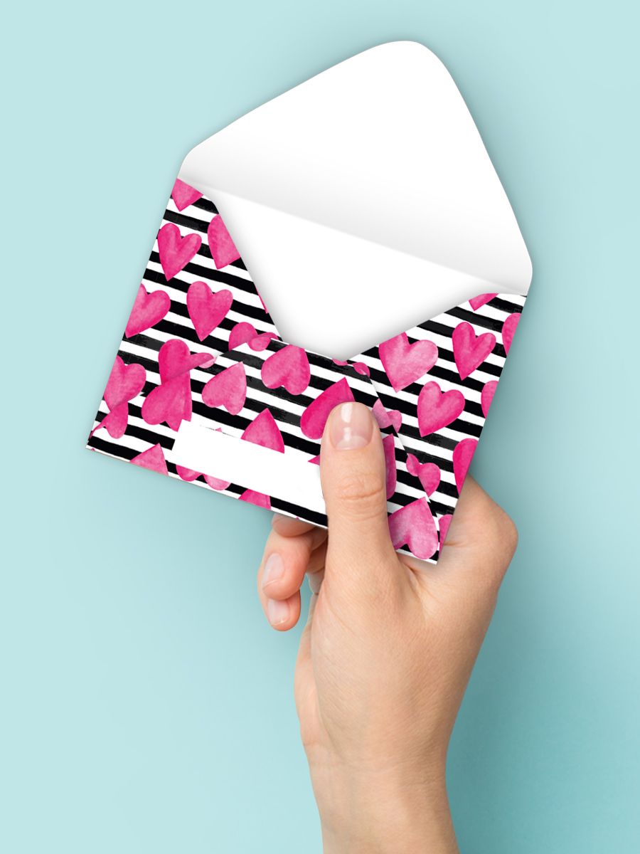 Конверт художественный малый «Сердца и полоски»