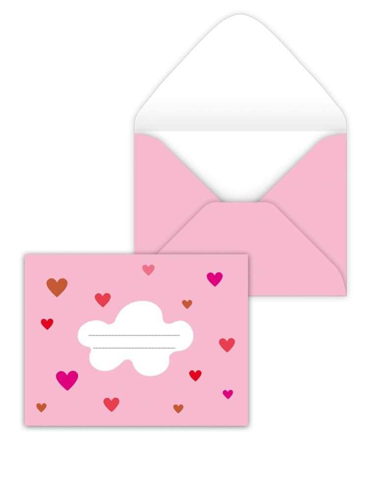 Конверт художественный формата А6 предназначен для оформления поздравительных и подарочных вложений в розничных и оптовых ассортиментных линейках. Изделие выполнено из плотной бумажной основы, обеспечивающей стабильную геометрию при длине 115 мм и ширине 90 мм, что удобно для размещения стандартных мини-открыток, небольших писем, сертификатов, вложений к подаркам и сопроводительных записок. Лицевая сторона имеет розовый фон с равномерно распределёнными декоративными сердцами различного размера и оттенков, что делает конверт функциональным решением для тематик, связанных с проявлением внимания: дни рождения, свадебные мероприятия, поздравления ко дню всех влюблённых, небольшие комплименты и личные послания. В центральной зоне размещён белый блок сложной облачной формы с двумя направляющими линиями для аккуратного внесения имени получателя, краткой подписи или служебной пометки; внутренняя часть без текста и иллюстраций, что позволяет использовать конверт в любых сценариях, включая корпоративные и индивидуальные заказы. Отсутствие дополнительной отделки упрощает хранение и транспортировку: изделия не слипаются, не требуют разделительных прокладок, могут поставляться и выкладываться в торговом зале плотными стопками без риска повреждения поверхности. Бумажный материал совместим с ручной подписью различными типами пишущих средств, а также с маркировкой штампами или наклейками, что важно при поточном оформлении заказов и подарочных наборов. Конверт оптимален для использования в сувенирных и книжных магазинах, цветочных салонах, службах доставки подарков, а также в частном применении при оформлении небольших презентов. В упаковке 20.