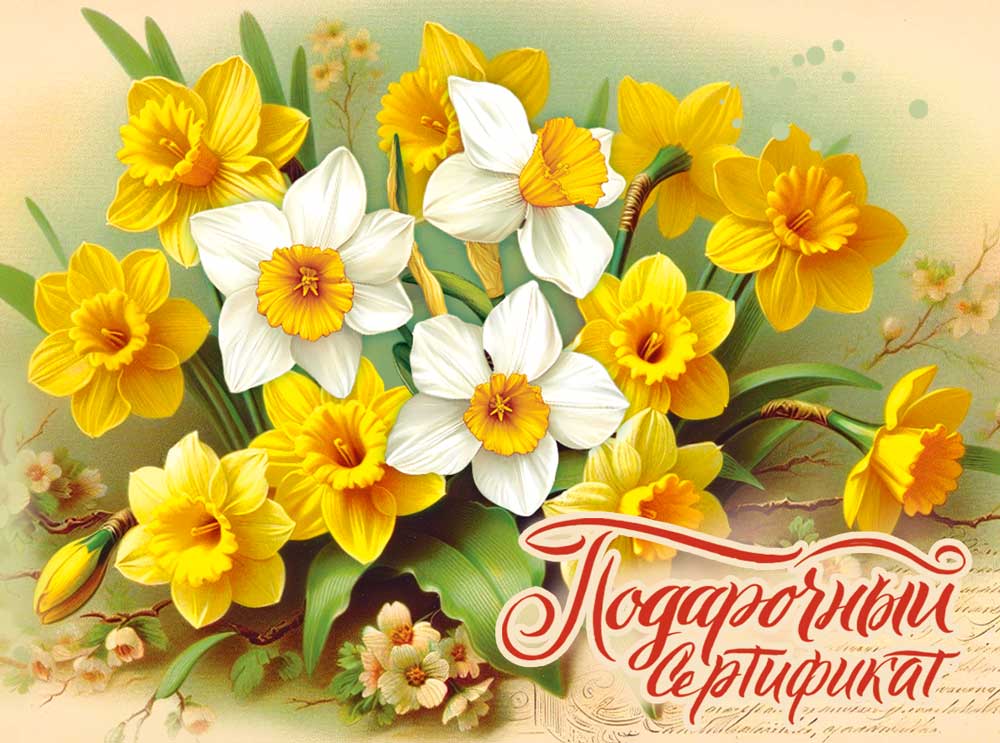 Конверт для подарочного сертификата формата А7 предназначен для упаковки и презентации сертификатов стандартных размеров, используемых в розничной и корпоративной подарочной программе. Изделие выполнено из плотного картона, обеспечивающего стабильную геометрию, устойчивость к деформации при транспортировке и хранении, а также аккуратный внешний вид в витринной выкладке и при передаче клиенту. Готовый размер конверта составляет 100 × 74 мм, что позволяет размещать внутри сертификаты и вложения соответствующего формата без перегибов и сминания краёв. Фигурная вырубка формирует аккуратный контур и удобные клапаны, за счёт чего конверт надёжно фиксирует вложение и не требует дополнительного крепления. Лицевая сторона оформлена полноцветным изображением нарциссов с надписью «Подарочный сертификат», что упрощает идентификацию назначения изделия в торговом зале и при сортировке на складе; внутренняя сторона остаётся без текста, оставляя пространство для размещения собственного бланка, логотипа, штампа или рукописной подписи. Поверхность дополнительно обработана глянцевым УФ-лаком, который повышает износостойкость, устойчивость к истиранию и выцветанию, облегчает уход за продукцией при длительном хранении и придаёт изображению более выразительный вид за счёт усиления цветопередачи. Конверт рассчитан на использование в магазинах подарков, салонах услуг, туристических и развлекательных компаниях, а также в корпоративных отделах по работе с персоналом и партнёрами, где требуется единый визуальный стандарт оформления сертификатов. Компактные размеры удобны при транспортировке крупными партиями, размещении в кассовой зоне и на стойках, а также при пересылке в почтовых отправлениях. В упаковке 10 изделий, что позволяет формировать оптимальные по объёму складские остатки и планировать закупки с учётом сезонного спроса на подарочные сертификаты.