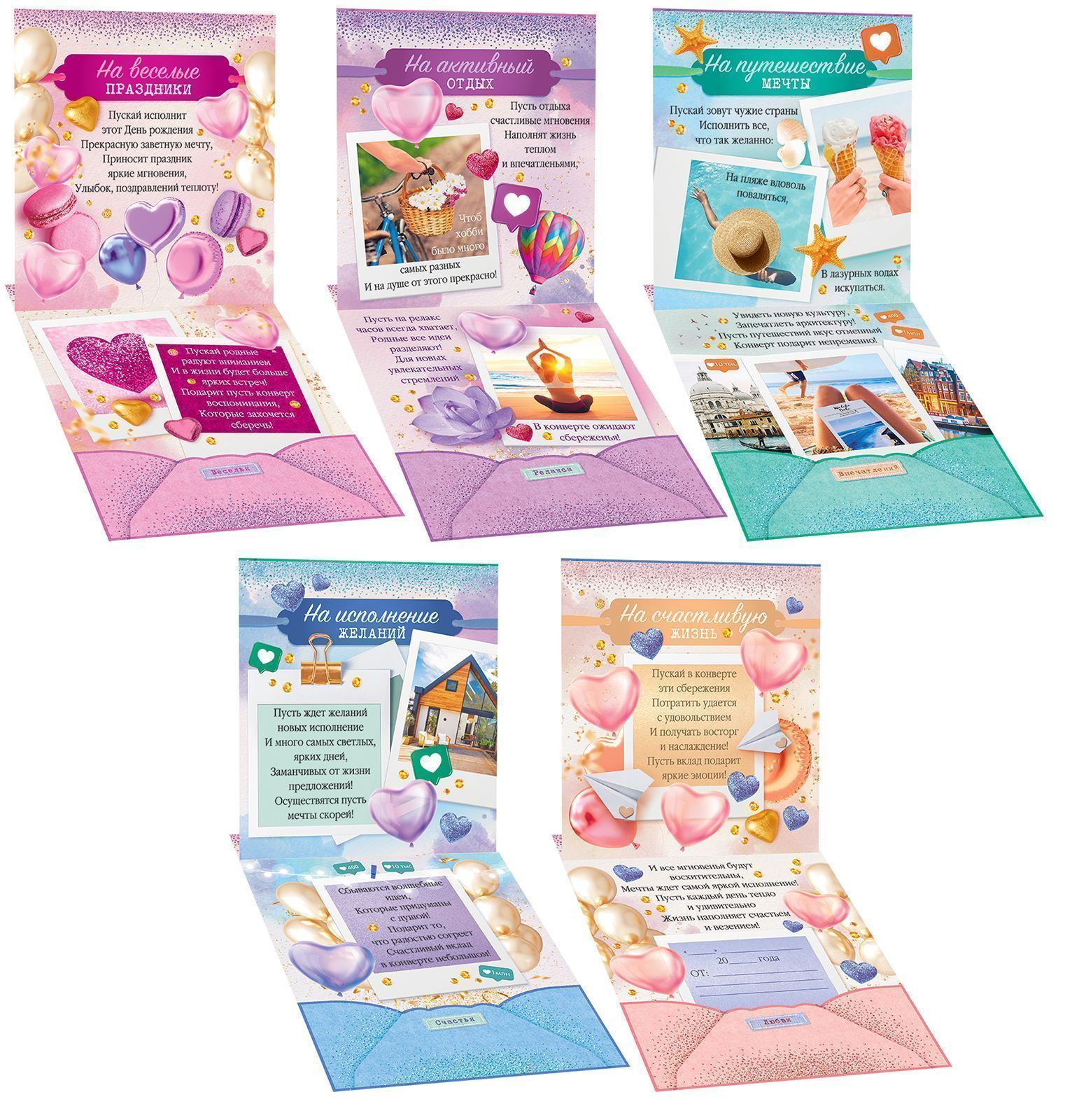 Сберкнижка формата А5 представляет собой подарочное изделие из плотного картона с полноцветной печатью и готовым текстовым наполнением на тему дня рождения. Конструкция выполнена с фигурной вырубкой, за счет чего внешний контур и внутренние элементы образуют цельную композицию, имитирующую традиционную сберегательную книжку. На лицевой стороне предусмотрен карман/клапан для размещения денежного вклада или подарочного сертификата, что позволяет использовать изделие как альтернативу конверту для денег. Дополнительный декоративный элемент — атласный бант в верхней части — закреплен таким образом, чтобы сохранять форму при транспортировке и складском хранении. Размер готового изделия составляет 215 × 163 мм, что обеспечивает совместимость с большинством стандартных коробок и транспортной тары, удобно при формировании оптовых заказов и выкладке в розничной точке. Картонная основа отличается достаточной жесткостью, устойчиво держит форму, не деформируется при кратковременных нагрузках и подходит для длительного хранения на полке. Печатное оформление включает поздравительный текст и тематические изображения воздушных шаров и сладостей в розово-золотой гамме, что визуально подчеркивает праздничный характер и облегчает выбор покупателю как готового решения для поздравления. Внутри предусмотрены текстовые блоки для пожеланий и символического «вклада», что делает использование изделия интуитивно понятным для конечного пользователя и снижает необходимость в дополнительной полиграфии. Сберкнижка подходит для дарения взрослым и подросткам, может использоваться как самостоятельный подарок или как упаковка для денежного презента на день рождения. Оптимальна для включения в ассортимент сезонных и постоянных коллекций подарочной продукции, хорошо комбинируется с открытками и пакетами в смежной цветовой гамме. В упаковке — 1 изделие.