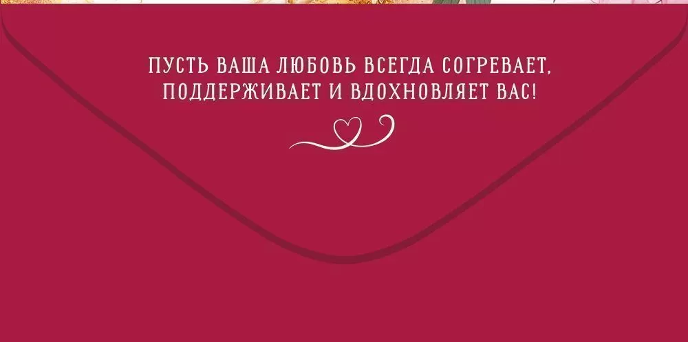 Подарочный конверт изготовлен из плотного картона с отделкой золотой фольгой. Материал хорошо держит форму и не помнется при транспортировке. Сверху на картонной основе отпечатано красочное полноцветное изображение. На обратной стороне есть теплые пожелания.