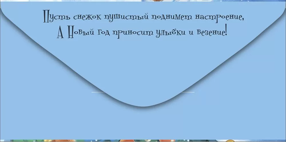 Новогодний конверт для денег с зимней композицией и добрыми пожеланиями. Переливающиеся элементы и тёплые слова — залог идеального поздравления.