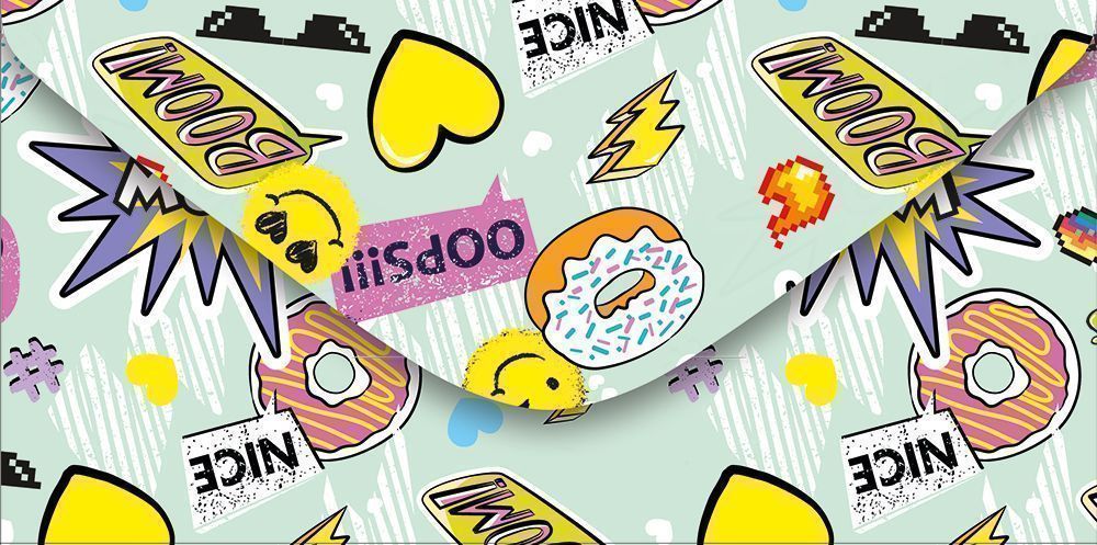 Конверт для денег евроформата предназначен для упаковки и вручения наличных средств, подарочных сертификатов и плоских вложений стандартного размера. Изделие выполнено из плотного картона, что обеспечивает форму и устойчивость к изгибам при транспортировке и хранении в коробах и лотках. Готовый размер конверта 168 × 84 мм, параметры выдержаны в пределах, удобных для размещения в большинстве кассовых и подарочных наборов, а также для укладки в стандартные почтовые и курьерские отправления. Конструкция с треугольным клапаном обеспечивает надежное закрытие без дополнительных элементов, при этом клапан легко открывается без повреждения основы, что важно при массовой выдаче и пересчете вложений. Внутри нет текста, поэтому конверт универсален для любых событий и может использоваться в розничных точках, корпоративных программах поощрения, детских и молодежных мероприятиях. Наружная сторона оформлена ярким многоцветным принтом в стиле поп-арт с графическими элементами «WOW», «LET’S GO», «OOPS», смайлами, пончиками и декоративными иконками; такое оформление ориентировано на молодежную аудиторию и подходит для дней рождения, выпускных, вечеринок, поощрений и тематических акций. Плотный картон устойчив к истиранию красочного слоя при частом перекладывании в стеллажах и при транспортировке пачками, что снижает процент брака в оптовых поставках. Конверты поставляются по 10 штук, что удобно для формирования складских остатков, фасовки по торговым точкам и планирования закупок под конкретные мероприятия. Изделие не имеет дополнительной отделки, что упрощает утилизацию и делает конверт пригодным для использования в качестве расходного материала в офисах, магазинах подарков и сувенирных отделах, где важны стабильное качество печати, предсказуемые размеры и единообразный внешний вид партии.
