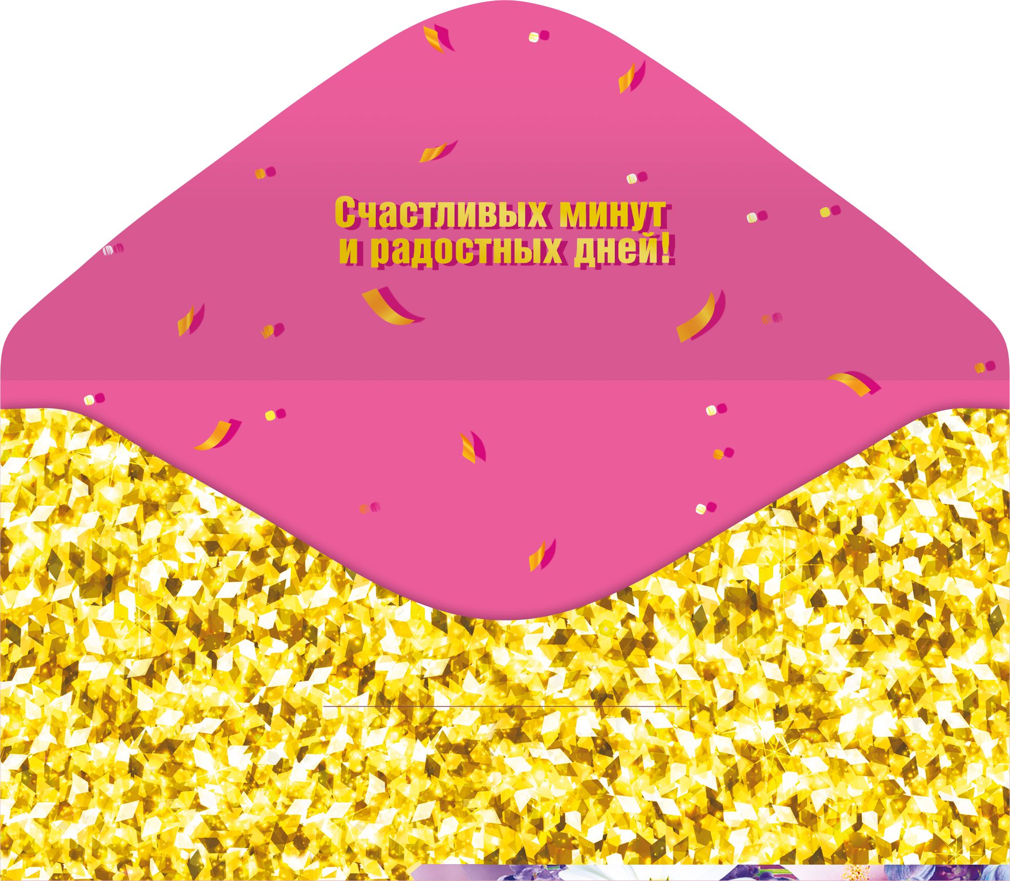 Конверт для денег формата Евро предназначен для оформления денежного подарка на день рождения и удобен как для розничного использования, так и для оптовых поставок в торговые сети. Изделие изготовлено из плотного картона, устойчивого к изгибам и истиранию, что обеспечивает сохранность вложения и аккуратный внешний вид на всём протяжении хранения и транспортировки. Габариты готового конверта 168 × 84 мм позволяют размещать внутри стандартные денежные купюры без сгибов и деформации, а также при необходимости вложить поздравительную записку или подарочный сертификат аналогичного формата. На лицевой стороне размещена яркая композиция с крупными ромашками и розами на контрастном фоне, дополненная поздравительным текстом «С Днём Рождения!», что делает изделие самодостаточным элементом подарка и снижает потребность в дополнительной упаковке. Печатное оформление выполнено полноцветным способом с применением устойчивых красок, рассчитанных на длительное сохранение цвета при обычных условиях эксплуатации. Отделка включает блестки в лаке радужные, создающие мерцающий декоративный эффект и подчёркивающие отдельные элементы изображения; покрытие фиксировано на поверхности и рассчитано на многократные касания без заметного осыпания при бережном обращении. Внутренняя сторона предусматривает текстовое поздравление, что сокращает время подготовки подарка и делает конверт удобным решением для точек продаж с высокой оборачиваемостью ассортимента. Количество в упаковке 10 обеспечивает оптимальный баланс между объёмом закупки и удобством складского учёта: пачки компактно размещаются в стандартных коробах, не деформируются при штабелировании и подходят для выкладки как в прикассовой зоне, так и на полочных экспозициях. Конверт совместим с большинством стандартных витринных и подвесных систем, что упрощает формирование линейки поздравительной продукции и поддержание единого стилевого ряда в ассортименте магазина или оптового склада.