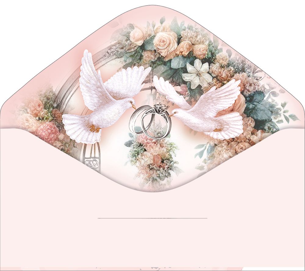 Конверт для денег формата «Евро» предназначен для оформления денежного подарка к свадьбе и ориентирован на использование в розничной продаже и оптовых закупках для сетей магазинов, сувенирных отделов и праздничной продукции. Изделие изготовлено из плотного картона, что обеспечивает стабильную геометрию, сохранность купюр стандартного банковского формата и устойчивость к деформации при транспортировке и хранении. Готовый размер конверта составляет 168 × 84 мм, что позволяет укладывать внутрь купюры без сгиба и использовать конверт в витринных экспозициях с типовыми еврохолдарами. На лицевой стороне размещена свадебная композиция в пастельной розово-кремовой гамме с букетом из роз и декоративной лентой, поверх которой нанесена надпись «С Днём свадьбы!», что позволяет использовать конверт без дополнительного оформления и уточнений по поводу повода. Внутри конверт не содержит текста, что даёт возможность универсального применения: можно вписать индивидуальное поздравление вручную, использовать корпоративный штамп или вложить отдельную открытку. Наличие фигурной вырубки формирует аккуратный декоративный край и облегчает доступ к вложенным купюрам, при этом конструкция остаётся достаточно жёсткой для эксплуатации в торговых стеллажах и при пересылке в почтовых отправлениях. Отделка включает лак soft-touch, создающий мягкое тактильное покрытие и дополнительную защиту печати от истирания, а также серебряную фольгу, подчёркивающую элементы надписи и отдельные детали композиции, что повышает визуальную выразительность изделия при искусственном и дневном освещении. Такое сочетание материалов и послепечатной обработки обеспечивает стабильное качество внешнего вида при длительном хранении на складе и в торговом зале. Конверт поставляется по 10 штук, что удобно для формирования ассортиментной матрицы, планирования остатков и размещения на полке в виде однородного блока. Изделие подходит для единичных покупок к конкретному торжеству и для систематического использования в свадебных салонах, агентствах по организации мероприятий и подарочных отделах.