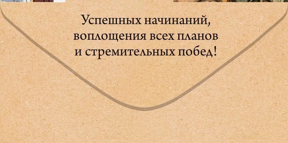 Подарочный конверт изготовлен из крафта. Материал хорошо держит форму и не помнется при транспортировке. Сверху на картонной основе отпечатано красочное полноцветное изображение. На обратной стороне есть теплые пожелания.