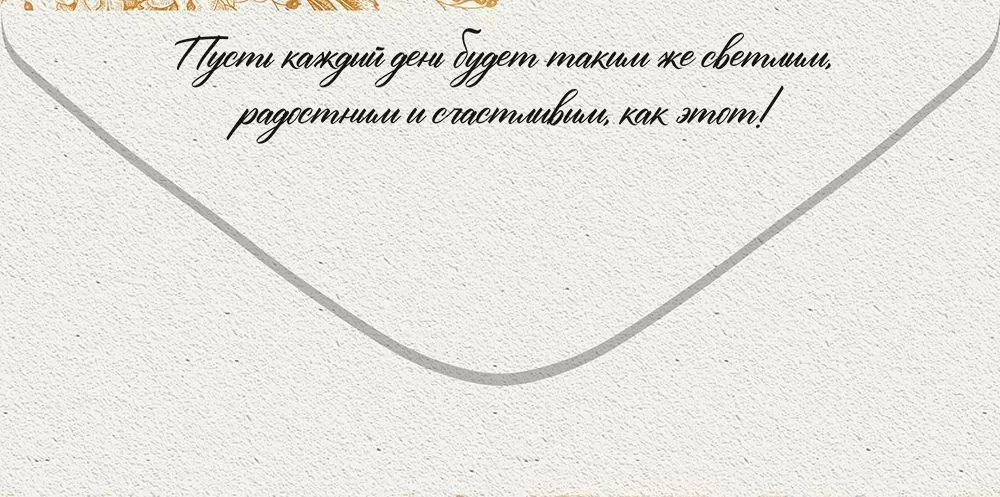 Подарочный конверт изготовлен из плотного картона. Материал хорошо держит форму и не помнется при транспортировке. Сверху на картонной основе отпечатано красочное полноцветное изображение, украшенное золотой фольгой. На обратной стороне есть теплые пожелания.