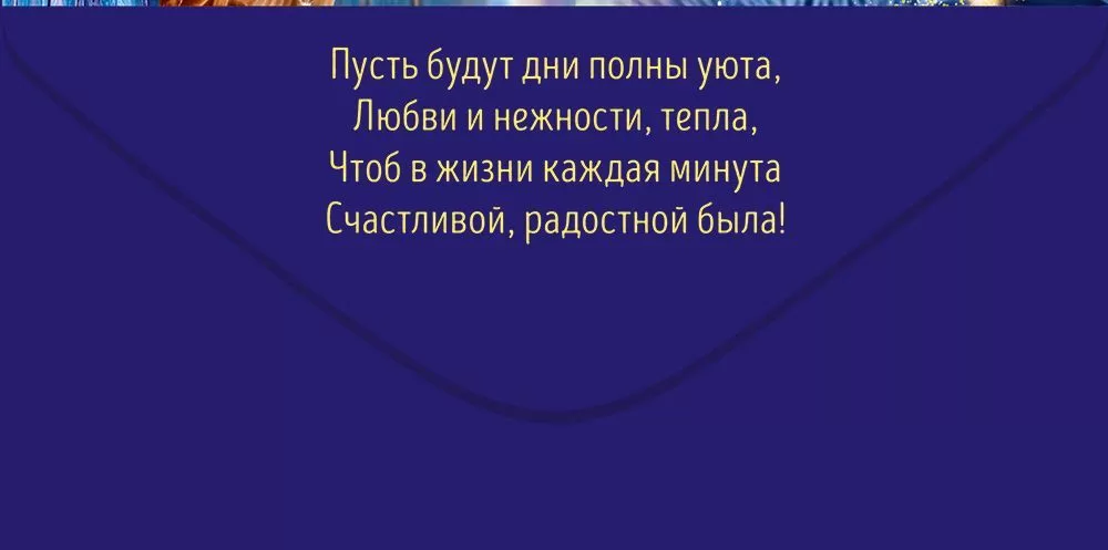 Подарочный конверт изготовлен из плотного картона и блесток в лаке. Материал хорошо держит форму и не помнется при транспортировке. Сверху на картонной основе отпечатано красочное полноцветное изображение. На обратной стороне есть теплые пожелания.