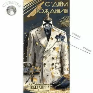 Стильный конверт для денег поможет грамотно оформить презент. Конверт украшен иллюстрацией и двумя прозрачными стразами. Подходит для подарка на праздник. Материал — плотный картон. Размеры — 168х84 мм, упаковка индивидуальная