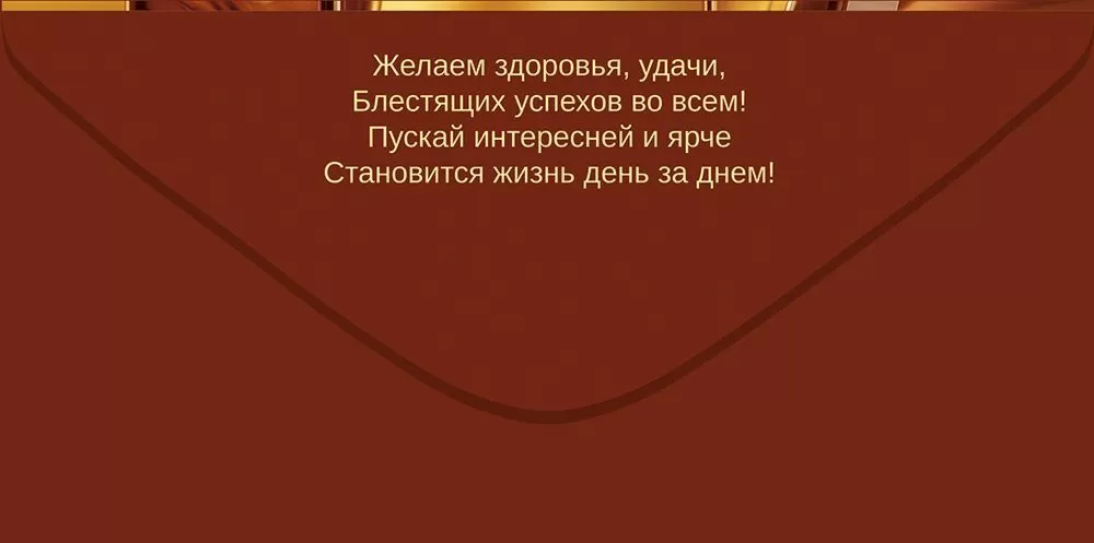 Подарочный конверт изготовлен из плотного картона, отделка – золотая фольга. Материал хорошо держит форму и не помнется при транспортировке. Сверху на картонной основе отпечатано красочное полноцветное изображение. На обратной стороне есть теплые пожелания.