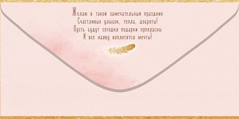 Поздравительный конверт для денег «Поздравляю!» с нежным дизайном преобразит любое торжество. Изображения розовых цветов на светлом фоне делает внешний вид изделия мягким и элегантным. Идеальный подарок для самых романтичных натур! Также внутри находится текст с приятными пожеланиями. Данный дизайнерский конверт для денег идеально подойдет в качестве основного подарка или как приятное дополнение к нему. Внутрь можно поместить любую денежную сумму, подарочный сертификат или билеты на концерт. Благодаря прочным материалам производства и качеству печати изделие удобно транспортировать и хранить – оно надолго сохранит свой яркий внешний вид, не помнется и не выцветет, что делает его не только хорошим подарком, но и прекрасным памятным сувениром!