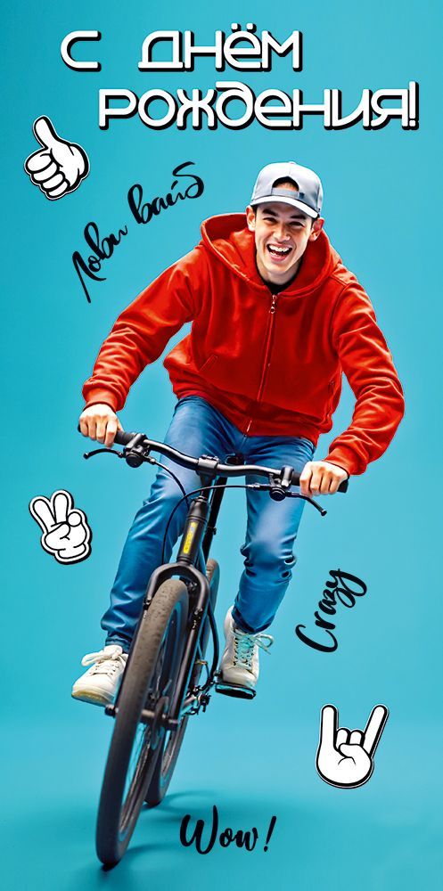 Конверт для денег формата евро предназначен для оформления и вручения денежных подарков на день рождения. Изделие изготовлено из плотного картона, что обеспечивает стабильную геометрию, сохранность купюр и устойчивость к механическим воздействиям при транспортировке и хранении в коробах или на витрине. Габариты готового изделия 168×84 мм позволяют размещать внутри стандартные банковские купюры без сгибов, с технологическим запасом по краям для удобного извлечения. Конверт имеет фигурную вырубку, за счёт которой формируется аккуратный контур и удобный клапан, поддерживающий форму при многократном открывании и закрывании. Лицевая сторона оформлена полноцветным изображением подростка на велосипеде на однотонном ярком фоне с надписью «С днём рождения!» и дополнительными графическими элементами в стиле современных стикеров, что делает изделие актуальным для подростковой и молодёжной аудитории. Внутри предусмотрен печатный поздравительный текст, позволяющий использовать конверт без дополнительной открытки и сокращая время подготовки подарка в рознице и на мероприятиях. Отделка выполнена глянцевым УФ-лаком, который подчёркивает цветопередачу, создаёт износостойкое защитное покрытие, устойчивое к истиранию, кратковременному воздействию влаги и загрязнений, что важно при оптовых поставках, длительном складском хранении и активной выкладке в торговых точках. Конверты поставляются по 10 штук, что удобно для формирования ассортимента по возрастным и тематическим линейкам, позволяет экономно планировать закупки и равномерно распределять позиции по розничным магазинам, интернет-заказам и корпоративным мероприятиям. Изделие подходит для использования в качестве самостоятельного подарочного оформления или в составе комплексного набора с открытками и сувенирной продукцией.